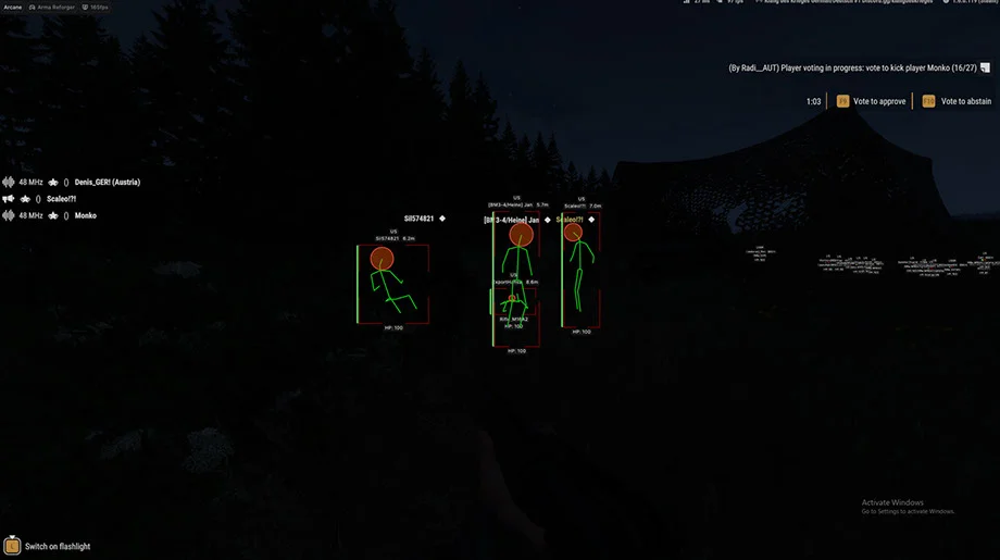 - Speedhack (x1.8), Full bright